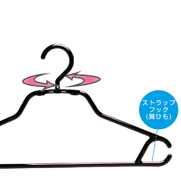 フックは360度回転フックは洗濯にも収納にも便利な360度回転で、ストラップフックもあるのでタンクトップやスカートなどのハンガーループも掛けられます。