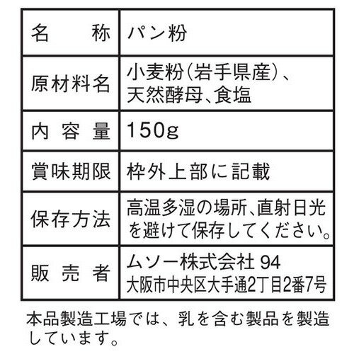 【通販限定/新品/取寄品/代引不可】ムソー 国産有機小麦粉使用天然酵母パン粉 21621 150g